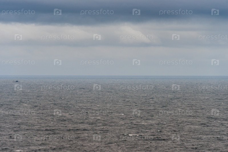 Облачный вид на Северный Ледовитый океан с подводной лодкой на горизонте