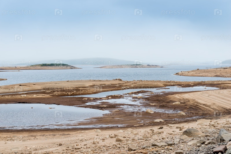 Естественное озеро в тундре на крайнем севере. Россия