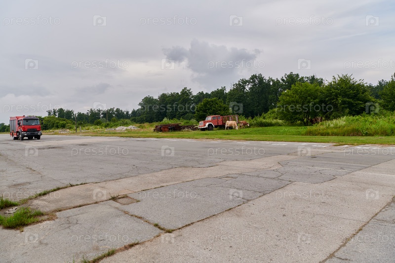 В этой захватывающей сцене современная пожарная машина, оснащенная передовыми спасательными технологиями, стоит наготове вместе со своей опытной пожарной командой, готовой вмешаться и быстро отреагировать на чрезвычайные ситуации, обеспечивая безопасность