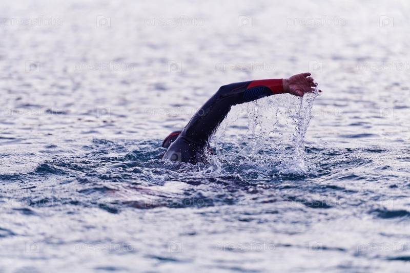 Профессиональный триатлонист с непоколебимой самоотдачей тренируется перед предстоящими соревнованиями на озере, излучая чувство атлетизма и глубокую приверженность совершенству