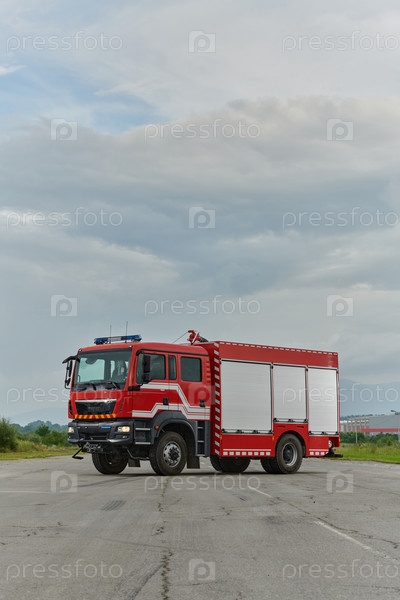 В этой захватывающей сцене современная пожарная машина, оснащенная передовыми спасательными технологиями, стоит наготове вместе со своей опытной пожарной командой, готовой вмешаться и быстро отреагировать на чрезвычайные ситуации, обеспечивая безопасность