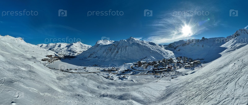 Зимняя фотография с дрона горнолыжных трасс и склонов, покрытых свежим пушистым снегом в Тине, Вальдизер, Франция