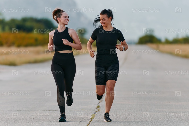 Двое друзей бегут вместе в солнечный день, готовясь к экстремальным испытаниям жизни
