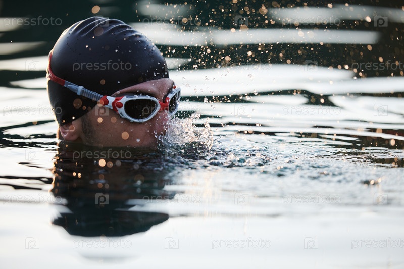 Триатлонист находит безмятежное восстановление сил в озере, наслаждаясь спокойствием воды после интенсивной тренировки