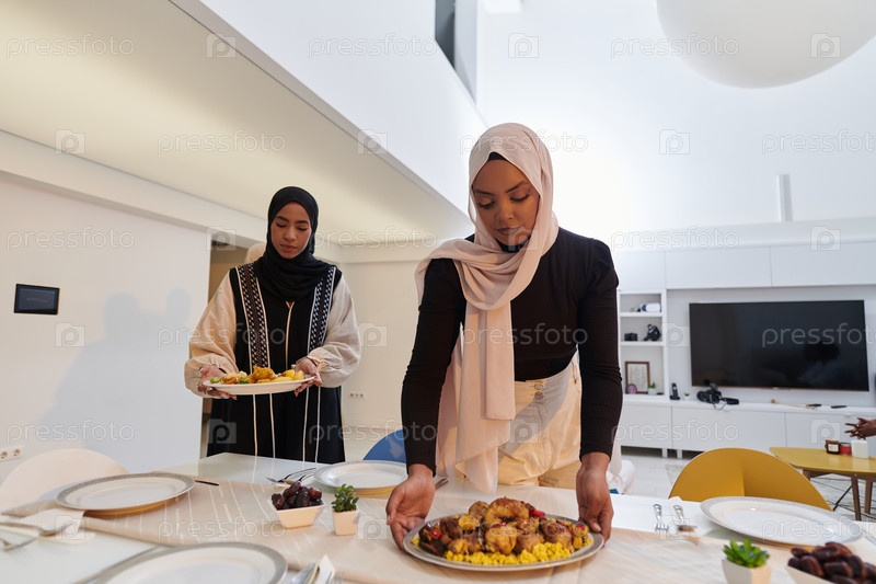 Группа молодых арабских женщин собралась вместе, чтобы с любовью приготовить ифтар во время священного мусульманского месяца Рамадан, воплощая в своих кулинарных творениях суть общинного единства, культурных традиций и радостного предвкушения