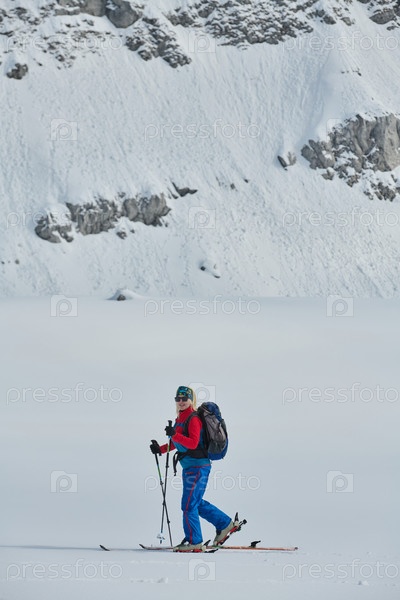 Женщина-альпинистка покоряет Альпы с походным снаряжением