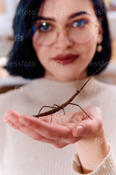 Молодая женщина, сфотографированная в прекрасный момент со своей палкой (Medauroidea Extradentata)