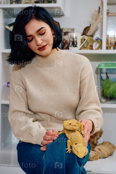 Красивая женщина позирует с двумя очаровательными питомцами — бородатыми агамами