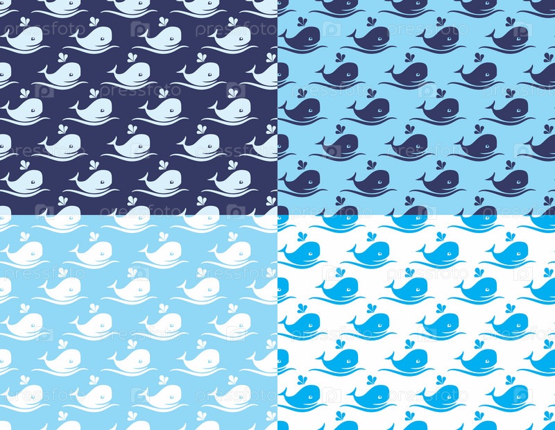 Бесшовный голубой фон с китами