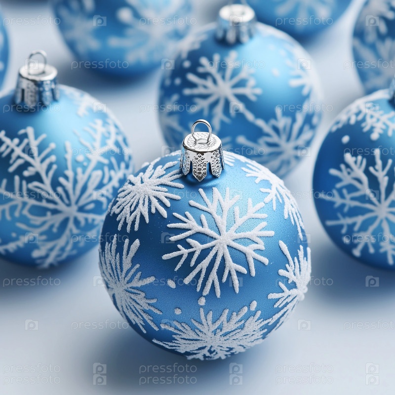 Новогодний фон с голубыми новогодними шарами с белым орнаментом