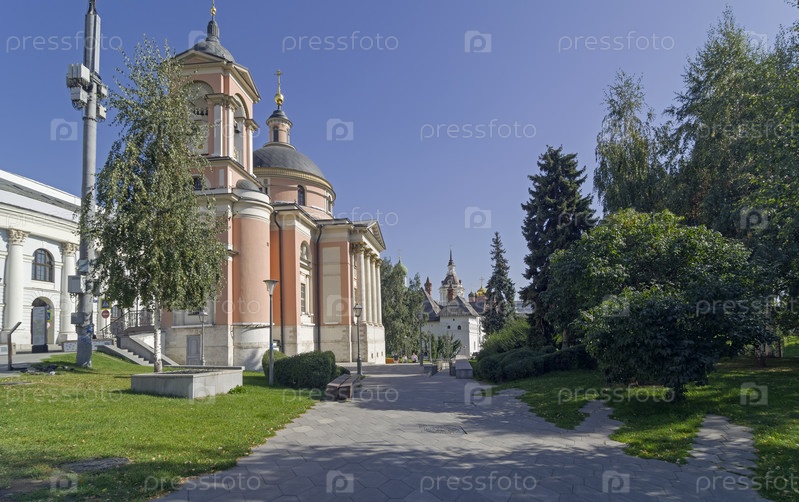 Храм Святой Великомученицы Варвары. Улица Варварка, 2, Москва. Вид из парка Зарядье. Солнечный день в сентябре