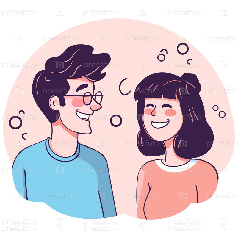 Улыбающаяся пара разговаривает и смотрит друг на друга
