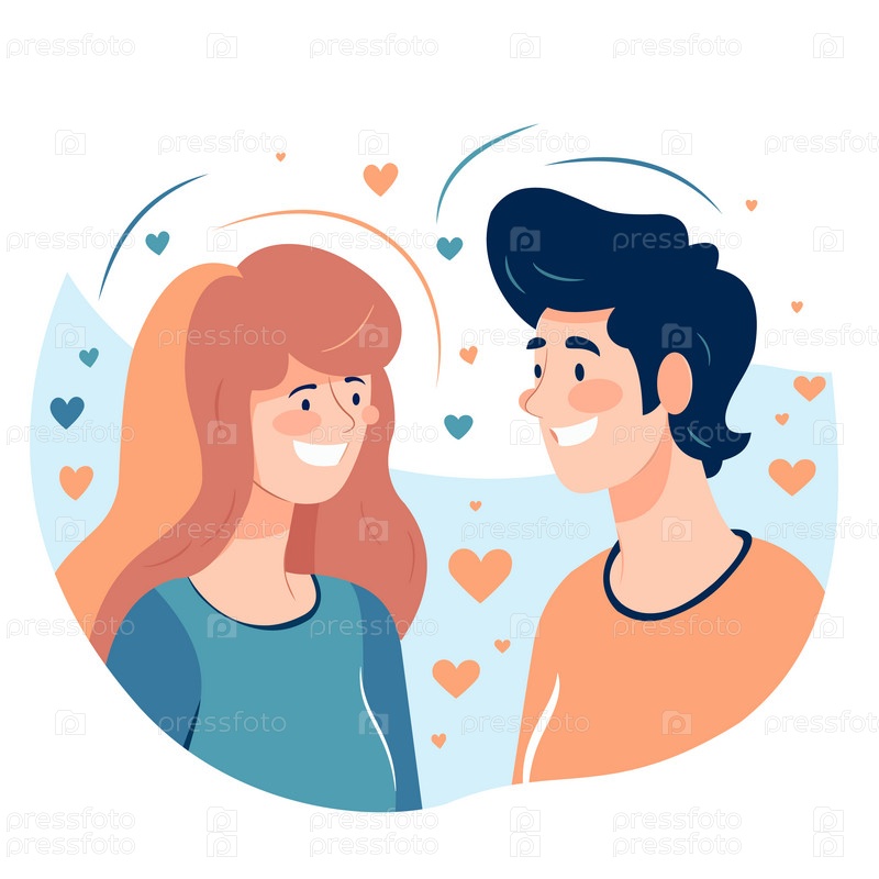Улыбающаяся пара разговаривает и смотрит друг на друга