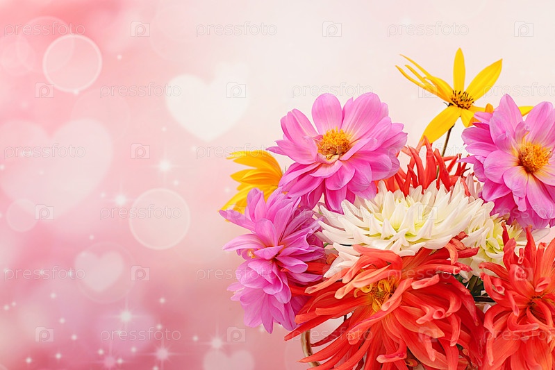 Красивый осенний баннер с георгинами и астрами с местом для текста, абстрактная цветочная композиция, праздничная открытка, сезонный натюрморт привет осень,