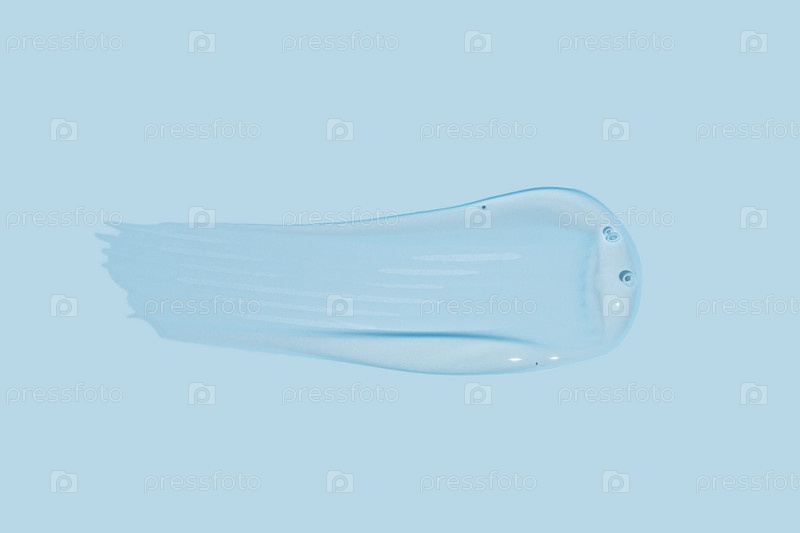 Мазь косметического прозрачного геля на синем фоне вид сверху. Beauty spa, красивое прикосновение к продукту по уходу за кожей