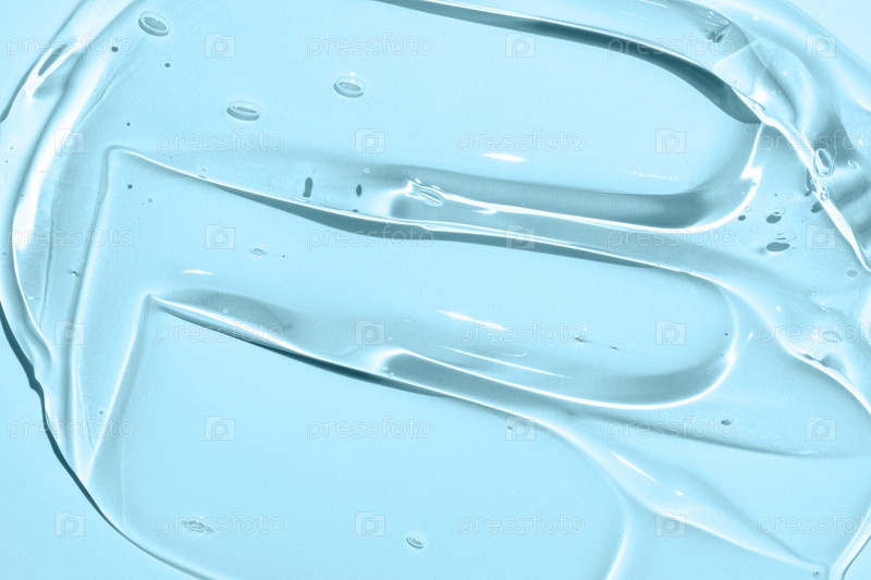 Косметическая сыворотка гель красоты swatch мазок пятна на синем фоне цвета. косметический продукт по уходу за кожей с текстурой пузырьков