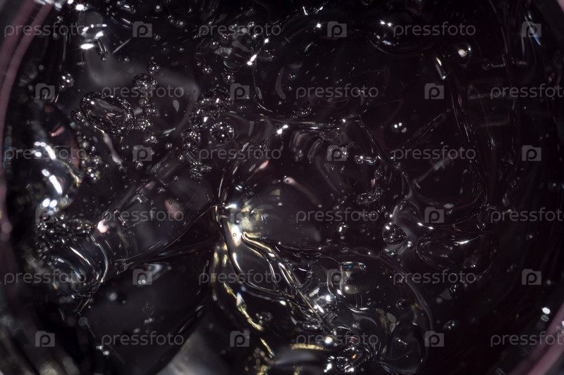 Косметический гель в черной банке крупным планом. Прозрачный гель с текстурой и пузырьками