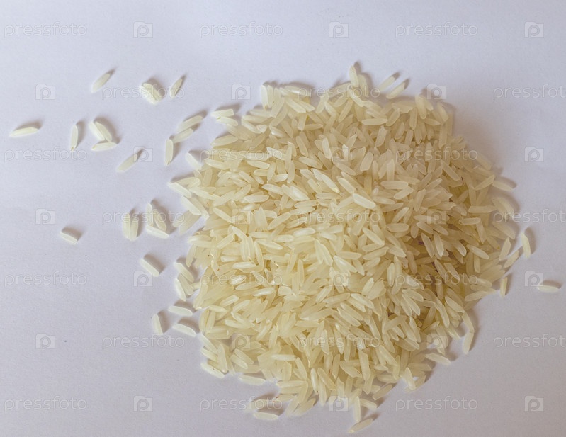 Крупный план сырого белого риса на белом фоне. Еда