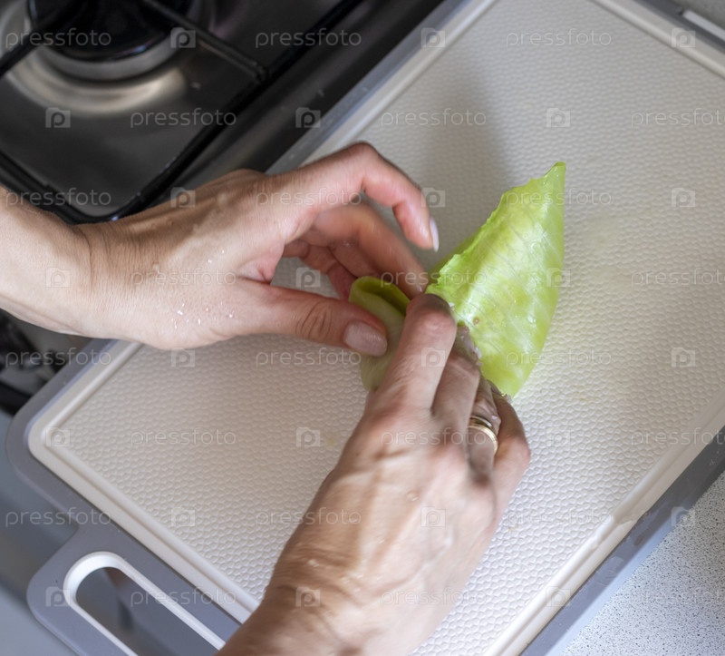 Фотография женщины, готовящей голубцы с мясом. Кулинария