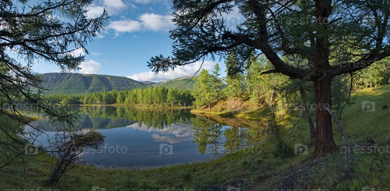 Россия, Западная Бурятия. Раннее утро на безлюдном таежном озере Гузэн-Нур на левом берегу реки Тисса