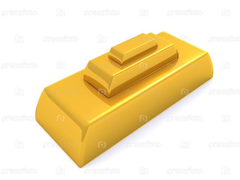 Пирамида из слитков золота на белом фоне