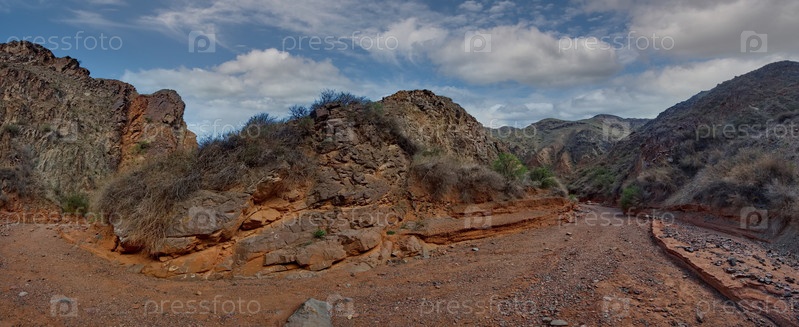 Северный Кыргызстан. Живописная извилистая тропа по каньонам Кок-Мойнок с красно-коричневыми скалами вдоль реки Чу