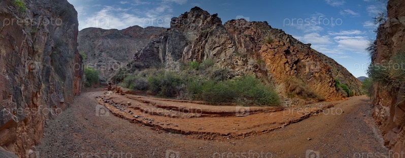 Северный Кыргызстан. Живописная извилистая тропа по каньонам Кок-Мойнок с красно-коричневыми скалами вдоль реки Чу