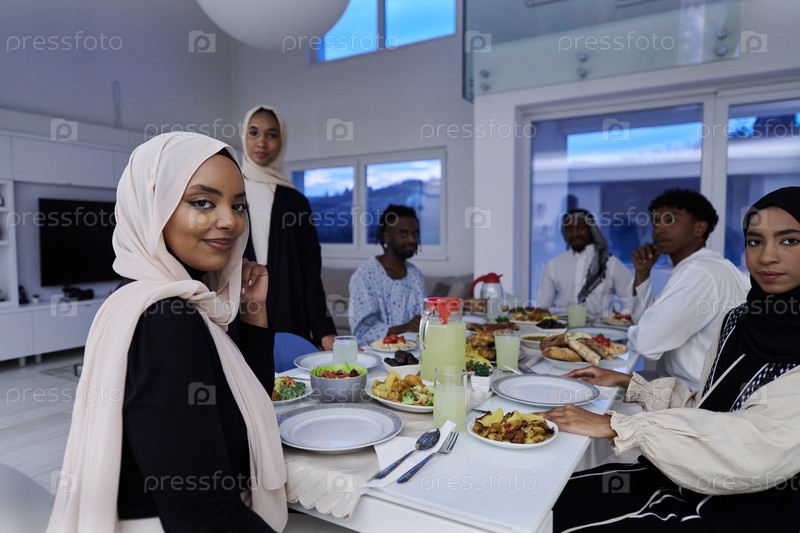 В священный месяц Рамадан мусульманская семья радостно собирается за столом, с нетерпением ожидая общего ифтара, участвуя в приготовлении общей трапезы и объединяясь в предвкушении коллективной молитвы, воплощая дух единения, преданности и культурного пра