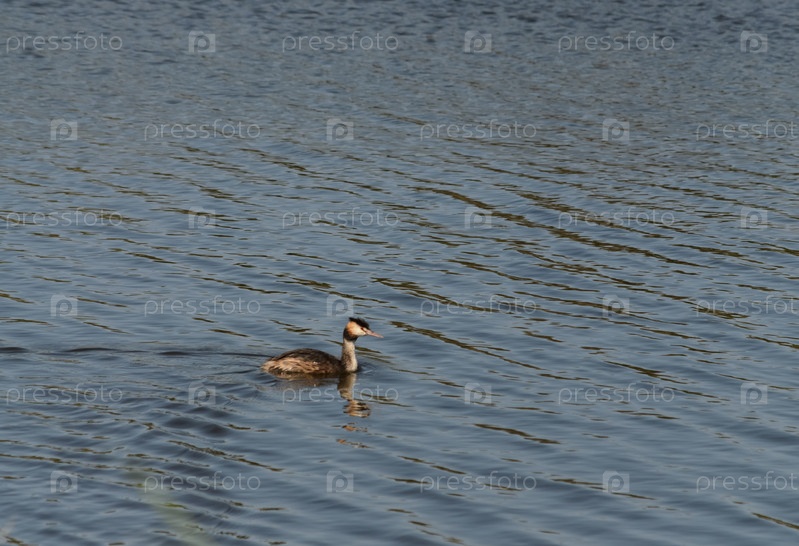 Утка чомга на озере