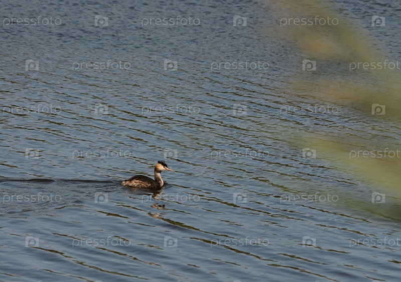 Утка чомга на озере