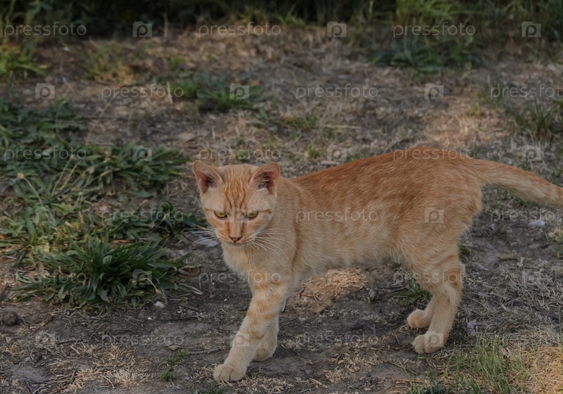 Рыжий кот на прогулке
