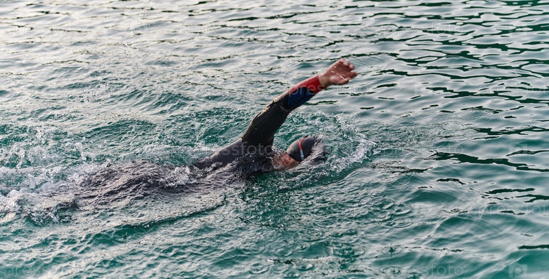 Профессиональный триатлонист с непоколебимой самоотдачей тренируется перед предстоящими соревнованиями на озере, излучая чувство атлетизма и глубокую приверженность совершенству