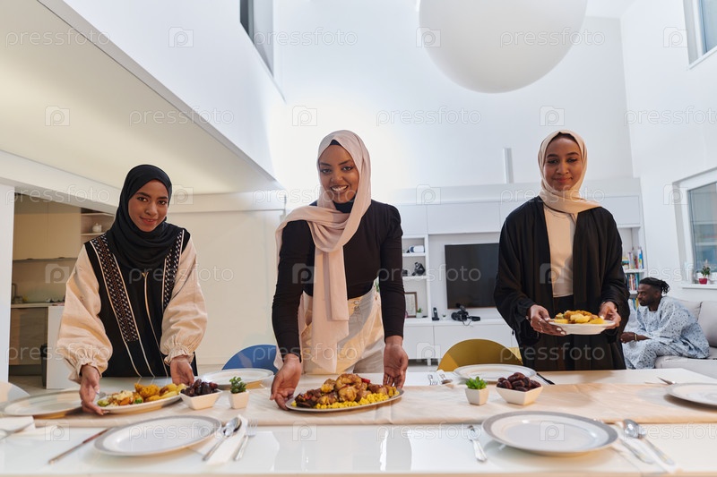 Группа молодых арабских женщин собралась вместе, чтобы с любовью приготовить ифтар во время священного мусульманского месяца Рамадан, воплощая в своих кулинарных творениях суть общинного единства, культурных традиций и радостного предвкушения