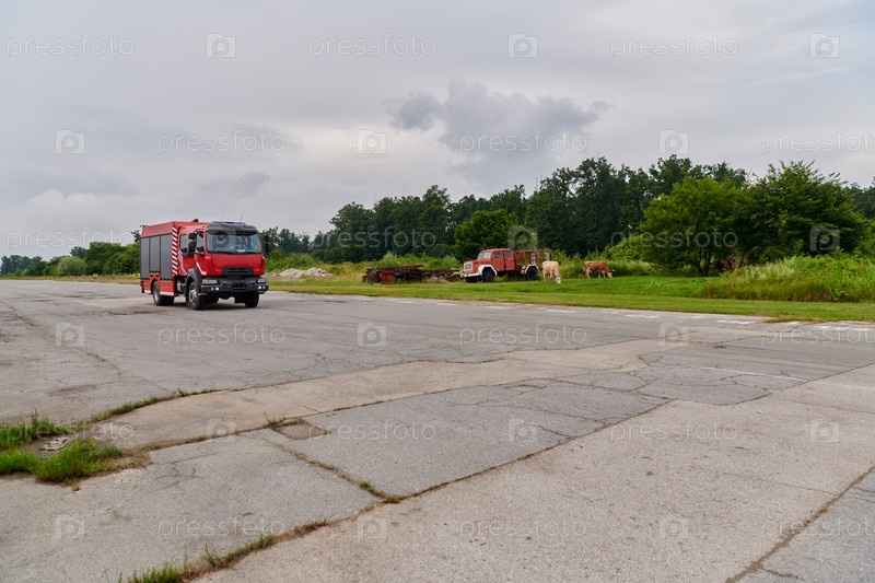 В этой захватывающей сцене современная пожарная машина, оснащенная передовыми спасательными технологиями, стоит наготове вместе со своей опытной пожарной командой, готовой вмешаться и быстро отреагировать на чрезвычайные ситуации, обеспечивая безопасность