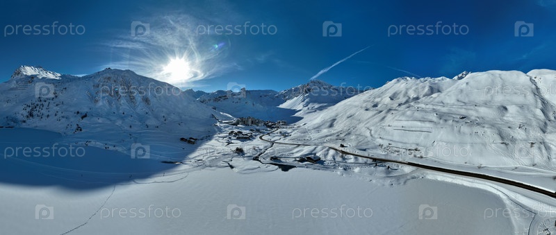 Зимняя фотография с дрона горнолыжных трасс и склонов, покрытых свежим пушистым снегом в Тине, Вальдизер, Франция