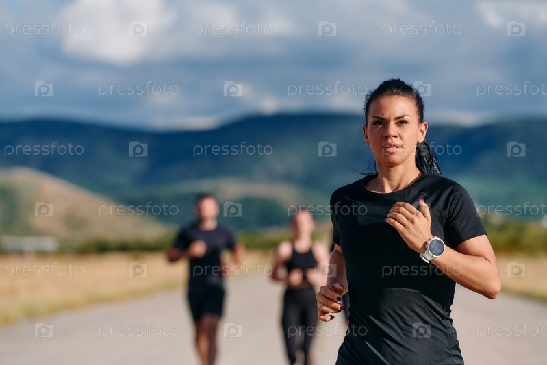 Лидер, направляющий спортсменов во время забега в солнечный день