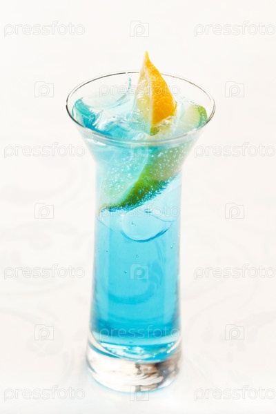 Голубой коктейль со льдом и лимоном