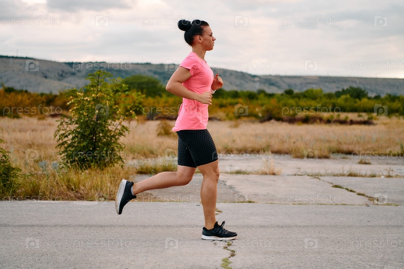 Решительный спортсмен бежит под солнцем на фоне прекрасной природы