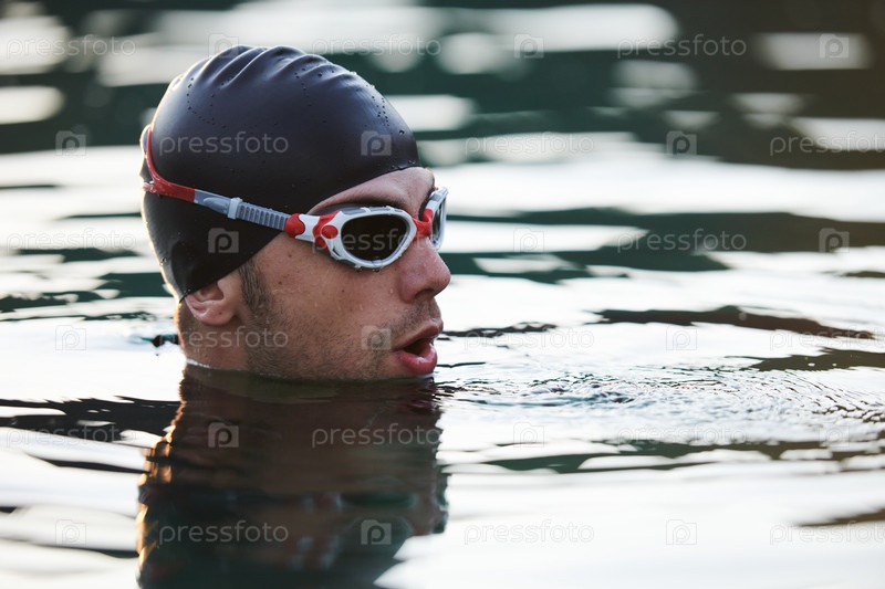 Триатлонист находит безмятежное восстановление сил в озере, наслаждаясь спокойствием воды после интенсивной тренировки