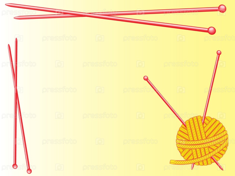 Спицы и клубок ниток на желтом фоне