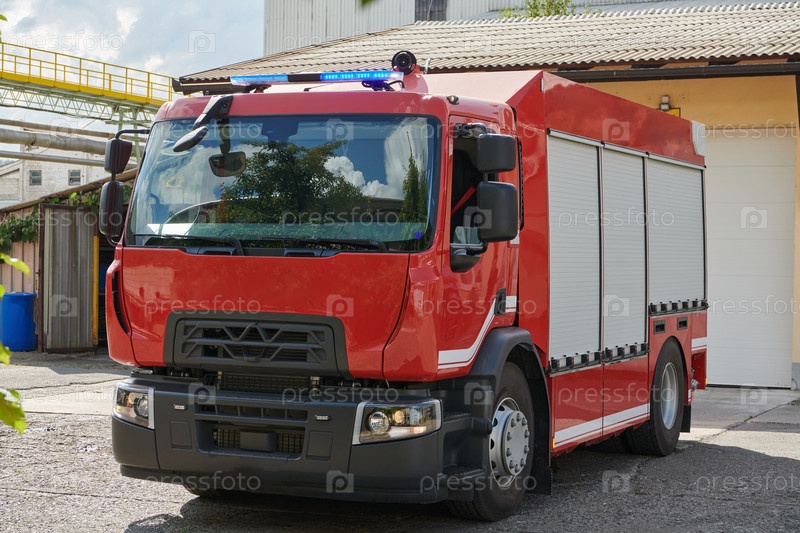 Современная пожарная машина, оснащенная передовыми спасательными технологиями, с опытной пожарной командой, готовой вмешаться и быстро отреагировать на чрезвычайные ситуации, обеспечивая безопасность и защиту общества
