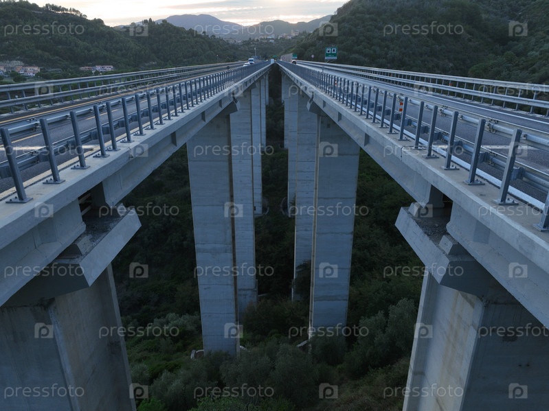 Вид с воздуха на автомобильный мост в итальянских горах