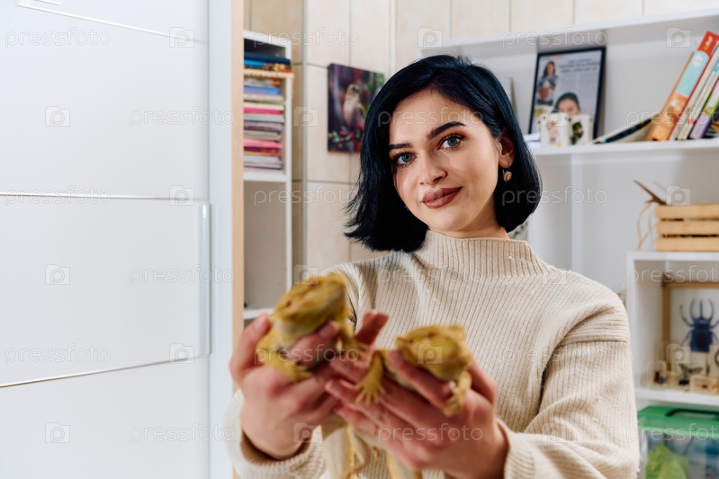 Красивая женщина позирует с двумя очаровательными питомцами — бородатыми агамами