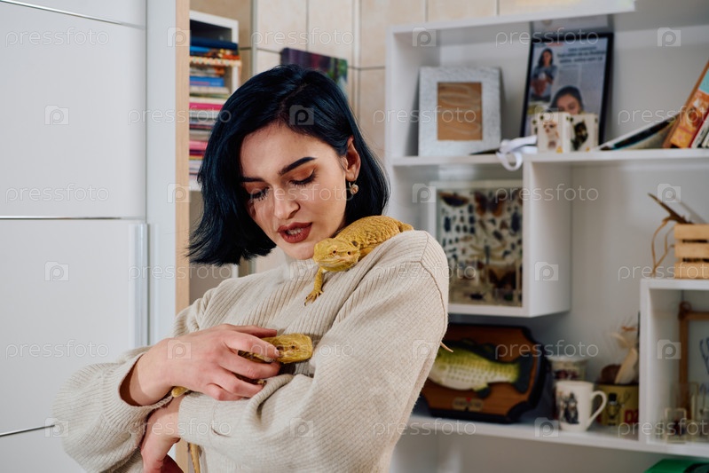 Красивая женщина позирует с двумя очаровательными питомцами — бородатыми агамами