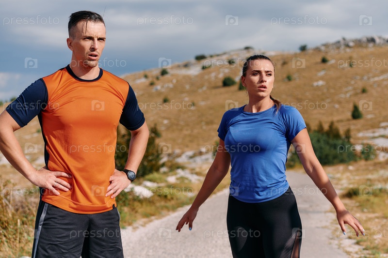 Пара отдыхает после интенсивной утренней пробежки