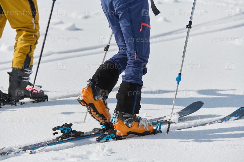 Крупный план лыжного снаряжения, готового к сложному восхождению