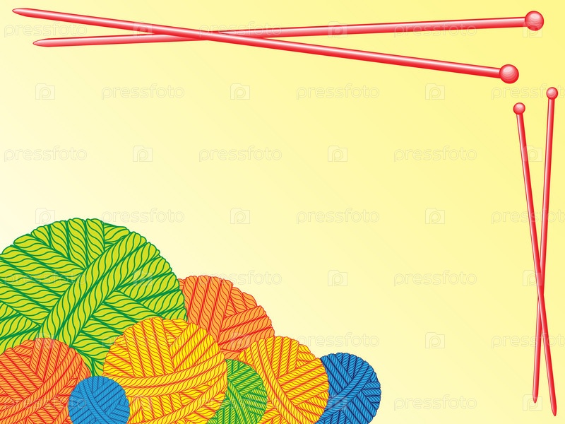 Спицы и клубки ниток на желтом фоне