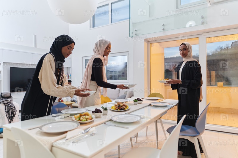 Группа молодых арабских женщин собралась вместе, чтобы с любовью приготовить ифтар во время священного мусульманского месяца Рамадан, воплощая в своих кулинарных творениях суть общинного единства, культурных традиций и радостного предвкушения