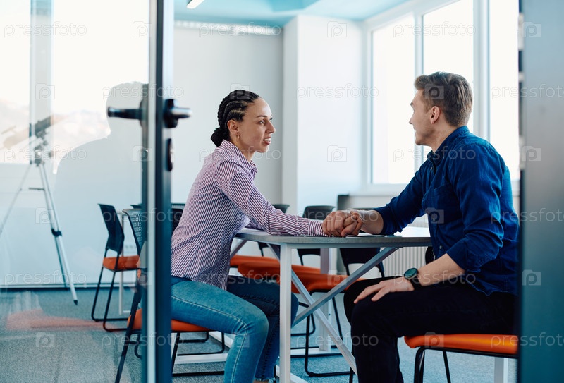В современном офисе стартапа бизнесмен и его коллеги по бизнесу устраивают символический поединок по армрестлингу, отражающий командную работу, конкуренцию и инновации в их динамичном рабочем пространстве