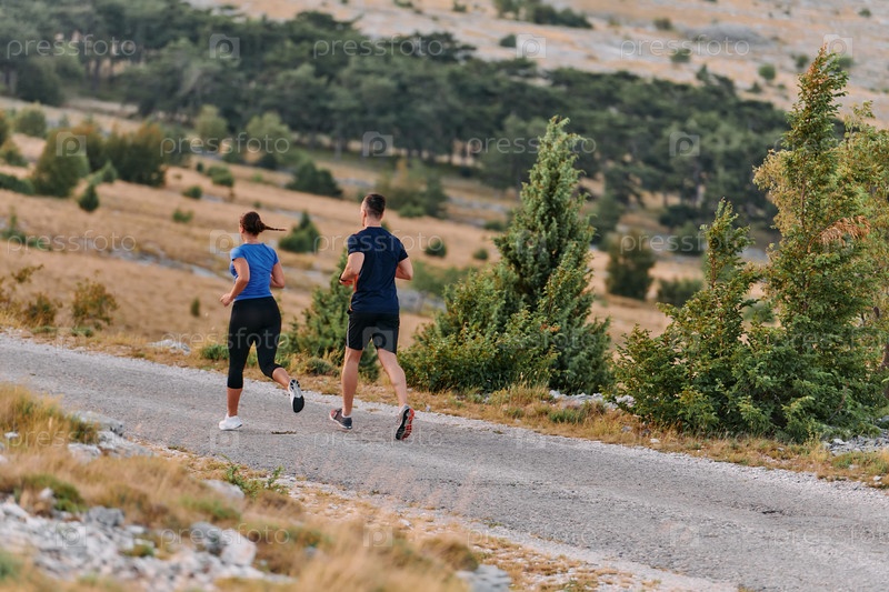Бодрящая утренняя пробежка для пары в горах